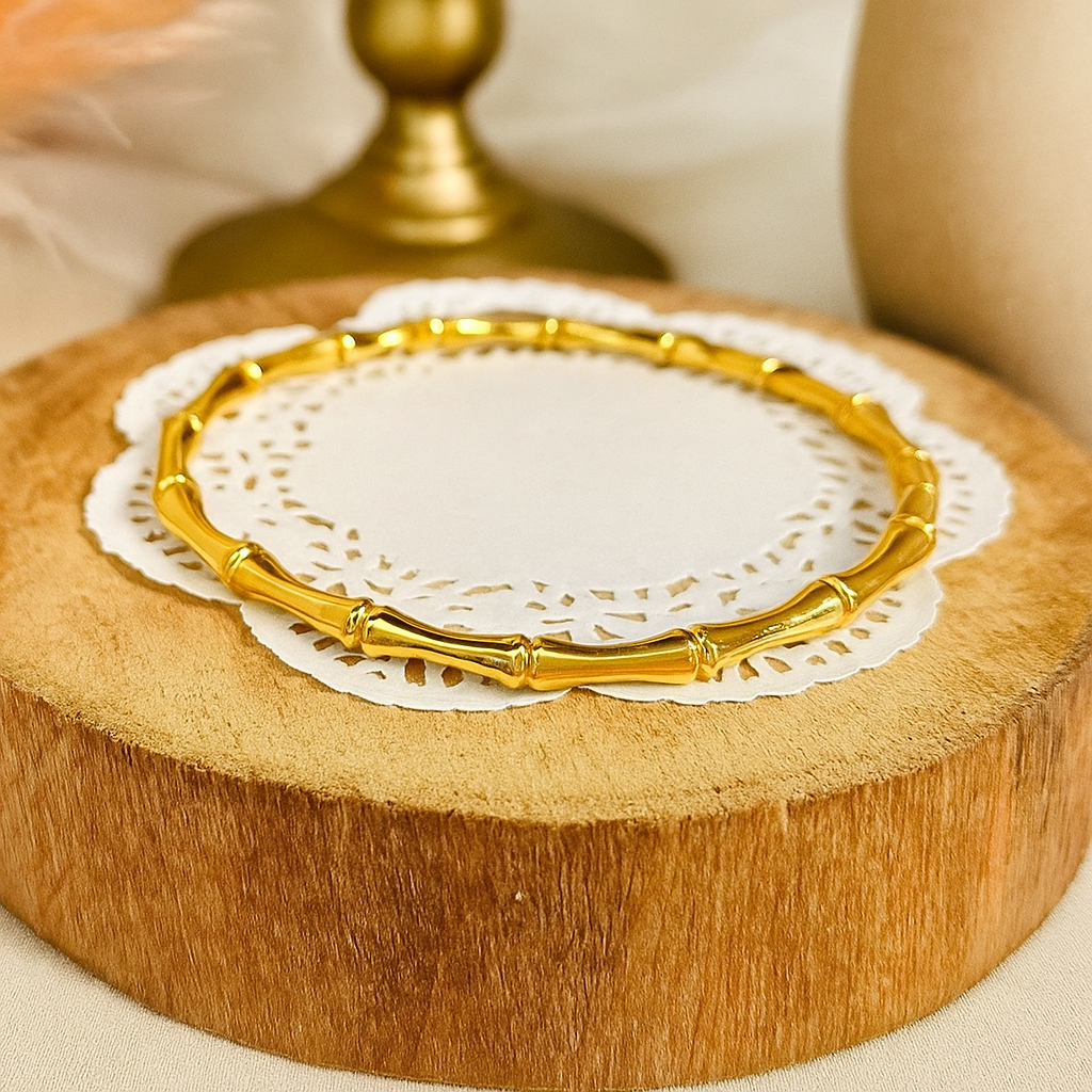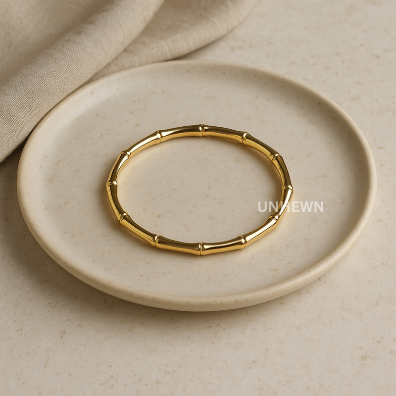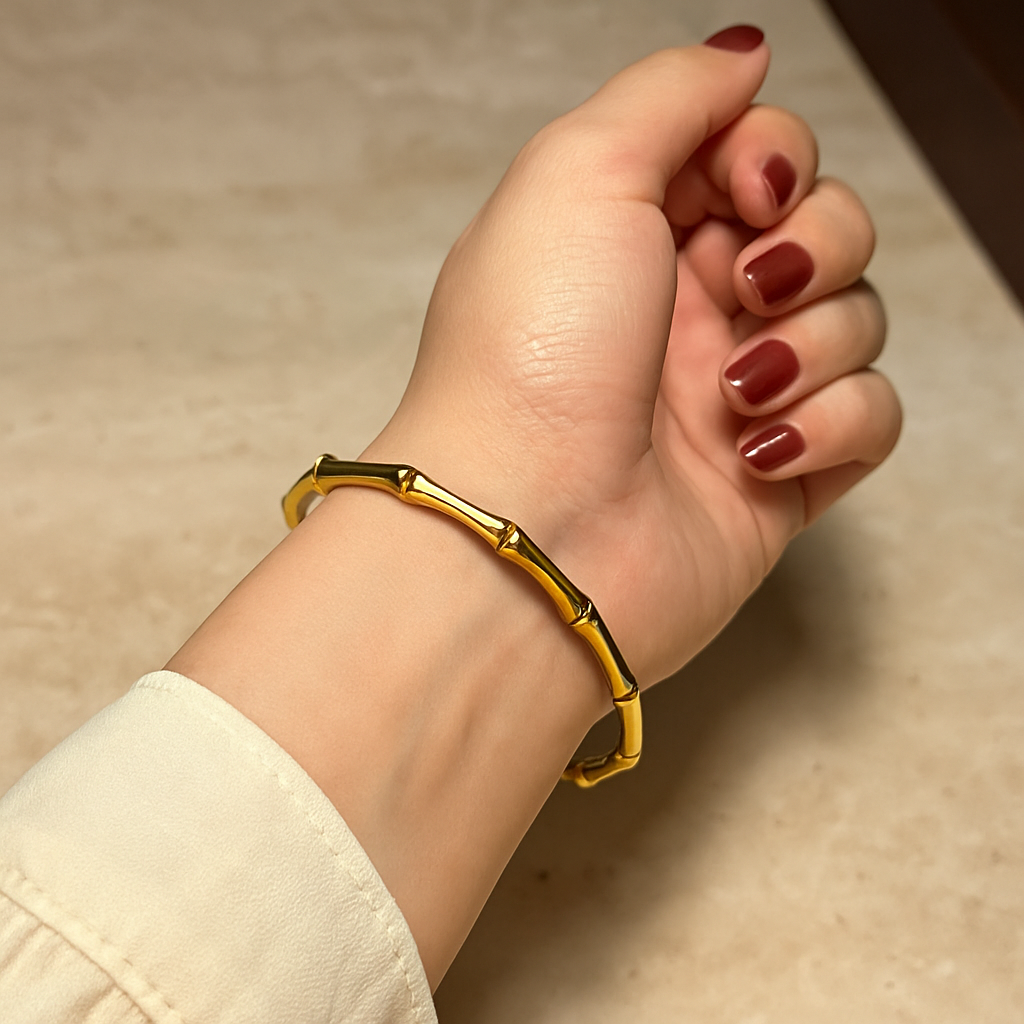 Inspired by organic forms, the Bamboo Link Bracelet blends nature’s elegance with a bold, structured finish. Its sculpted, jointed design mimics bamboo segments - offering a refined yet statement-worthy silhouette. A perfect piece to wear solo or stack with contrasting textures for a modern, earthy look.