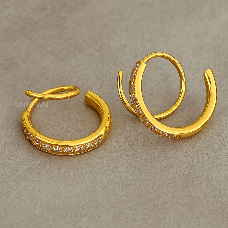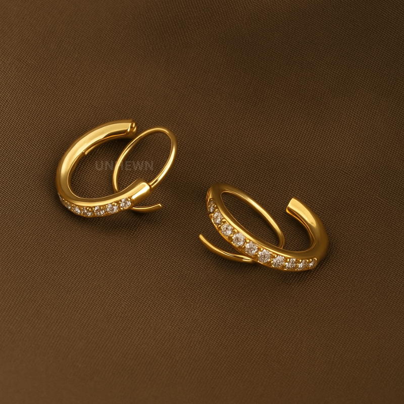 Refined elegance meets modern sparkle with the Dazzle Curve Hoop Earrings. Designed in polished gold and lined with shimmering crystals, these hoops bring just the right amount of shine to any look. Their lightweight and comfortable fit make them perfect for everyday wear, while the sparkling finish ensures you’ll stand out on special occasions.