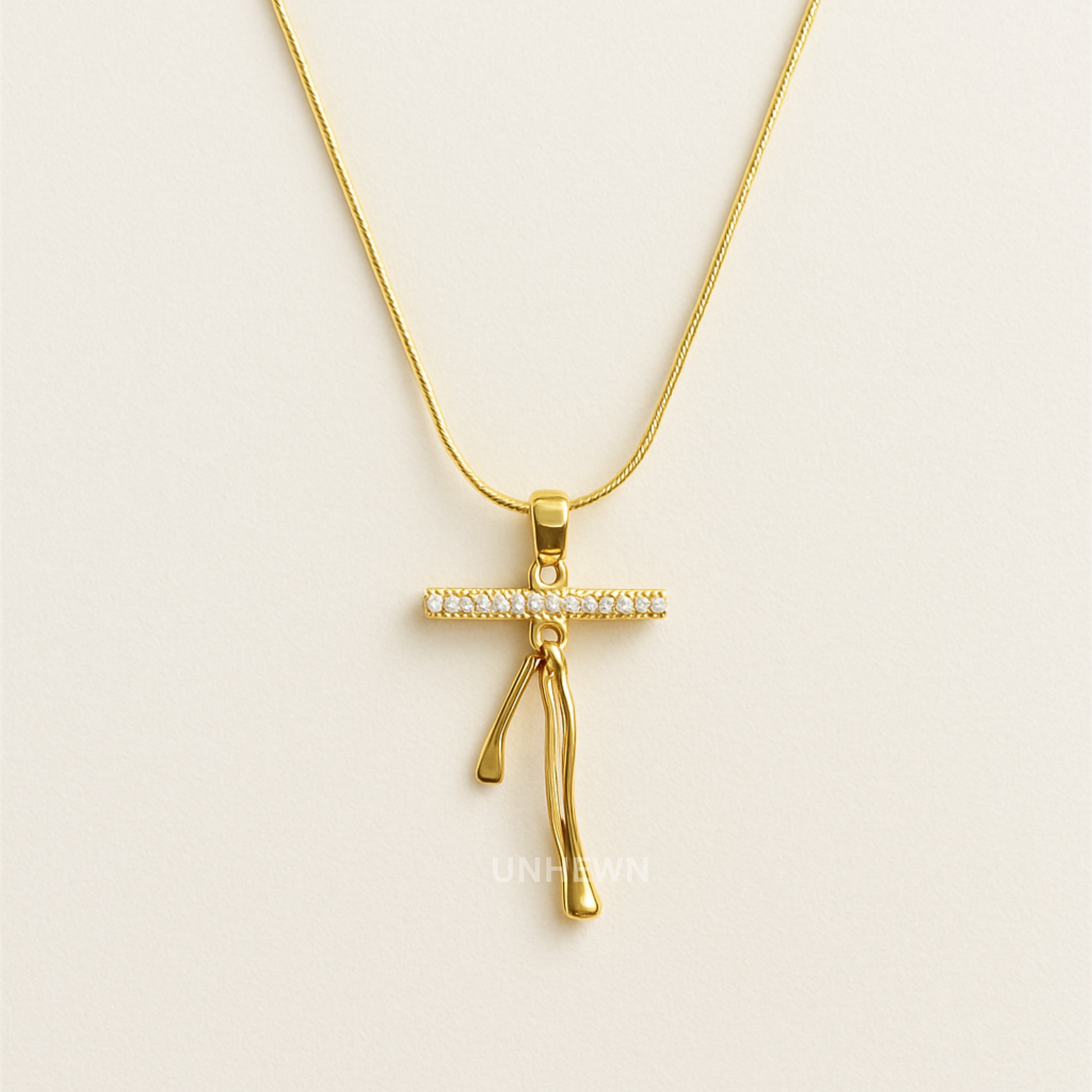 Embrace a little everyday magic with this elegant gold wishbone pendant necklace. The design pairs a textured wishbone charm with a shimmering crystal-studded bar, symbolizing hope, luck, and new beginnings. A meaningful gift or personal talisman in a sleek, modern style.