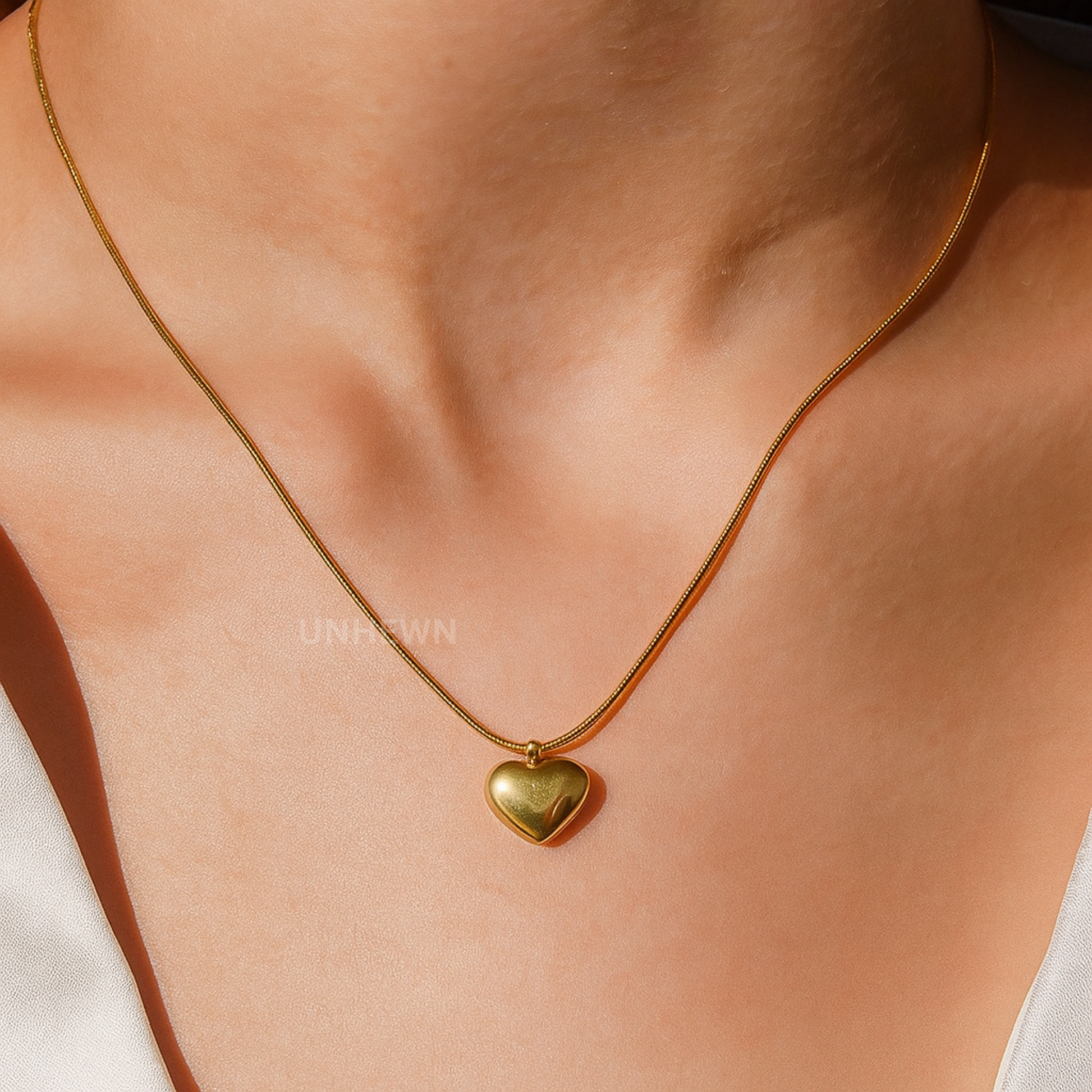 Elegant and minimal, the Golden Heart Pendant Necklace adds a soft, sentimental touch to any look. Featuring a polished heart charm on a delicate gold-toned chain, it’s perfect worn solo or layered with your favorite pieces. A timeless everyday staple.