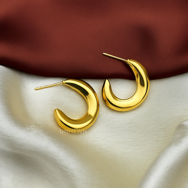Shine with celestial elegance in the Golden Luna Crescent Hoop Earrings. With their bold, curved silhouette and radiant gold finish, these hoops capture the allure of the moon while adding a touch of modern sophistication. Designed to be both striking and versatile, they’re the perfect statement piece for day-to-night styling.