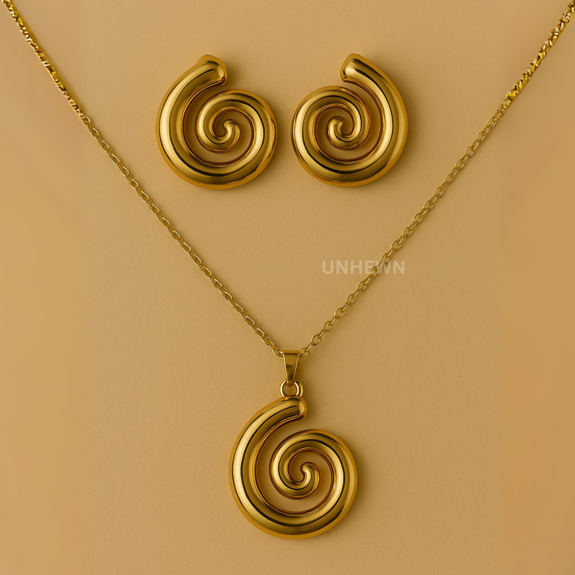 Golden Spiral Jewelry Set (Necklace & Earrings)