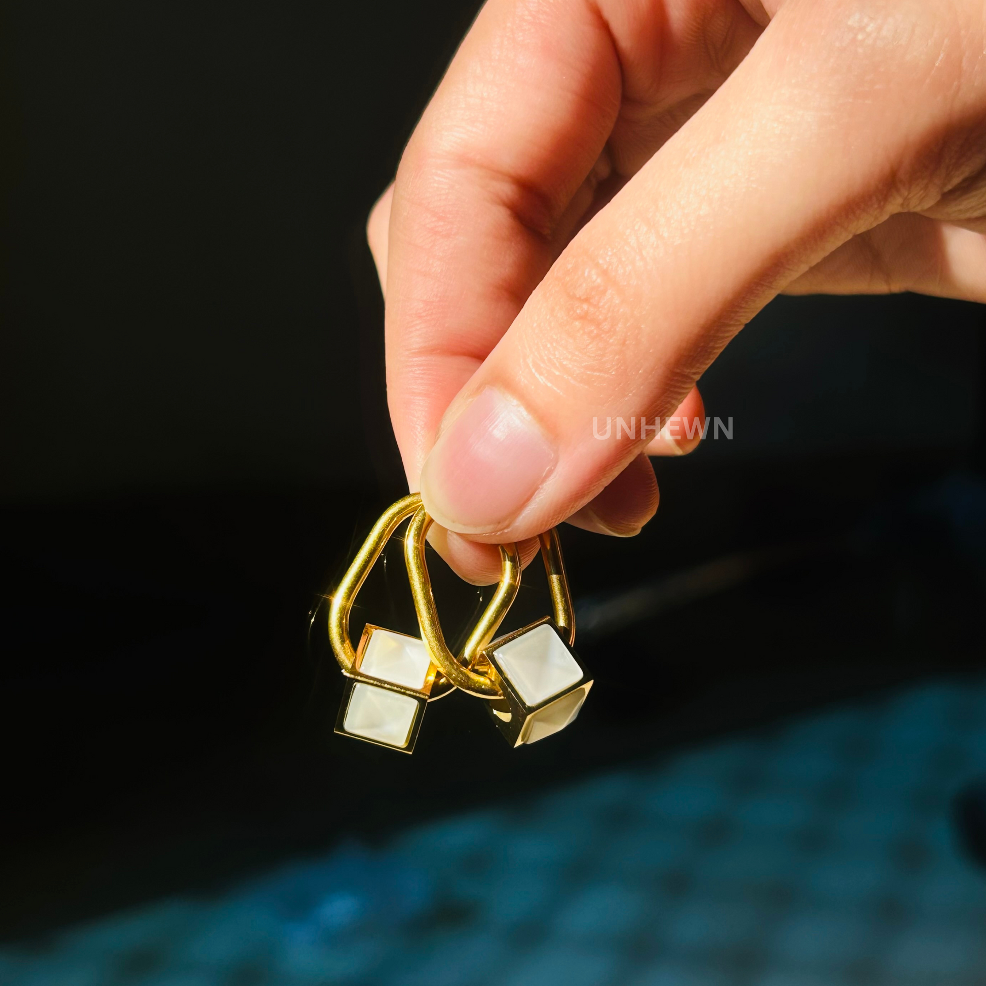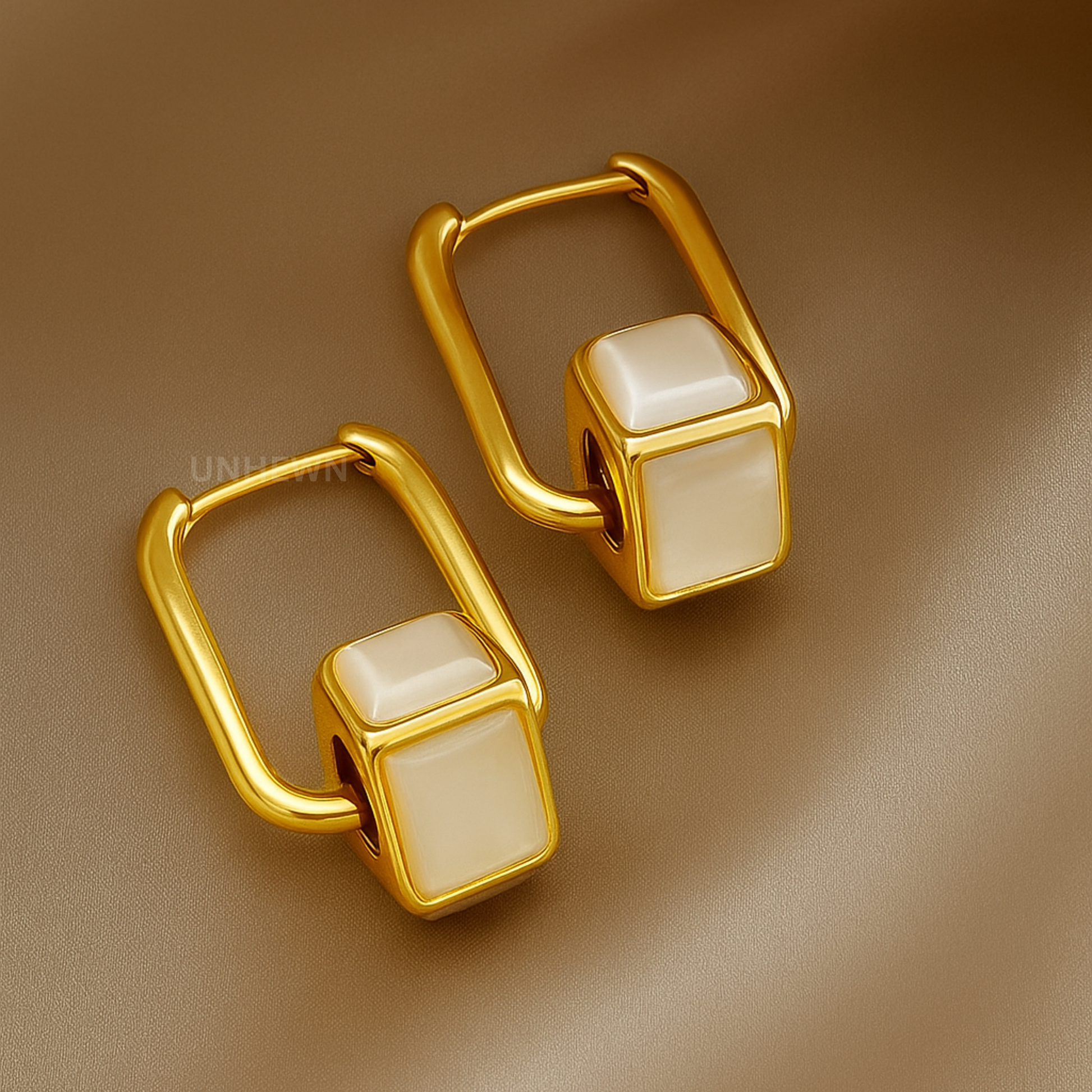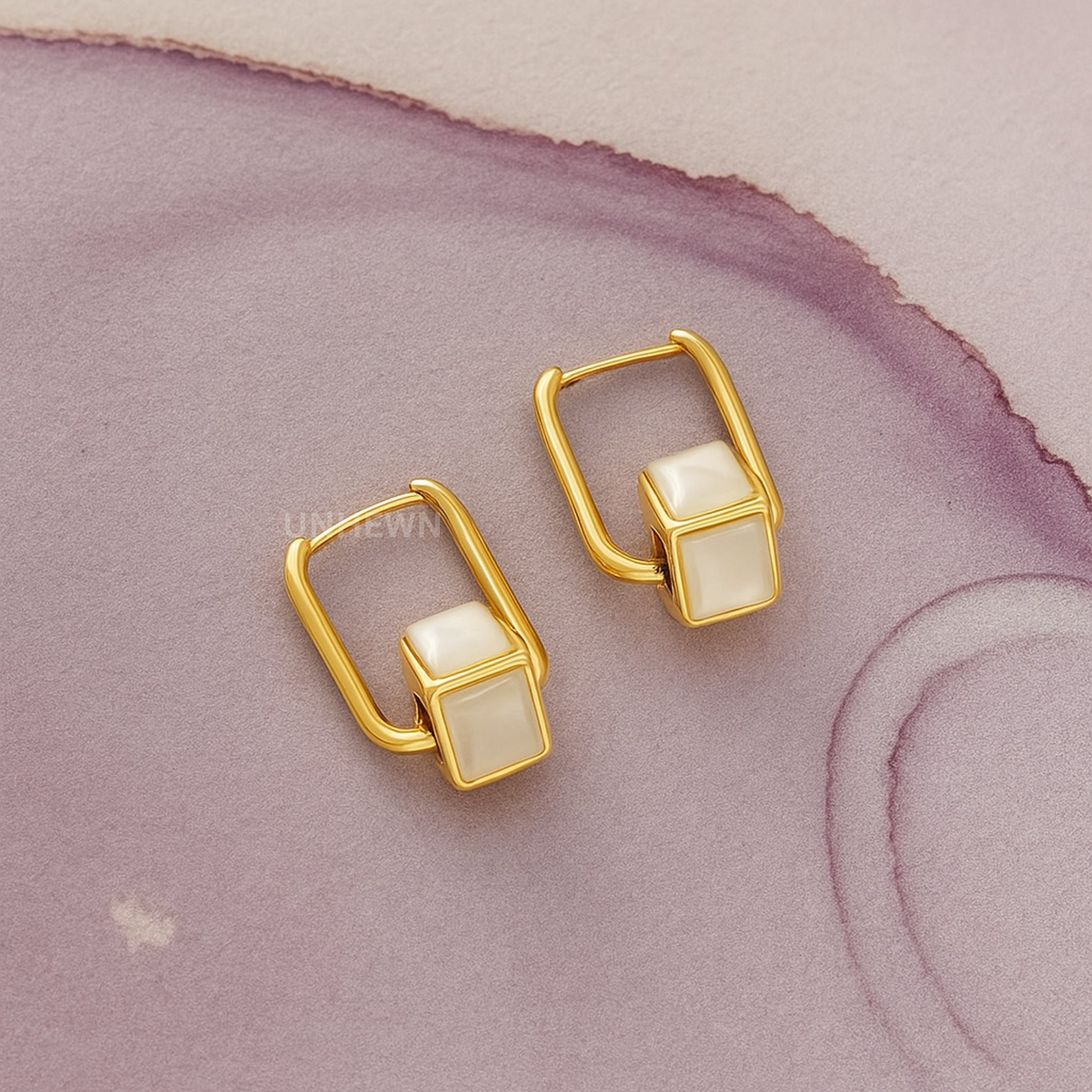 Sleek and sculptural, the Ivory Block Huggie Earrings blend clean lines with modern charm. Featuring a rectangular ivory enamel detail set in a gold-tone frame, these huggies offer a bold yet refined accent to any outfit. Minimalist, elegant, and made to elevate.