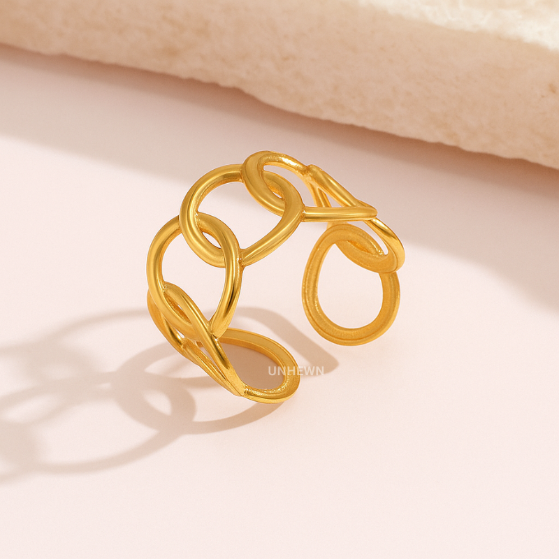Make a bold statement with the Midnight Halo Gold Band Ring, featuring a smooth gold-plated band and a striking black crystal inlay. Its sleek and modern design adds a touch of mystery and elegance to any look. Perfect for those who love minimalist jewelry with a dramatic edge.