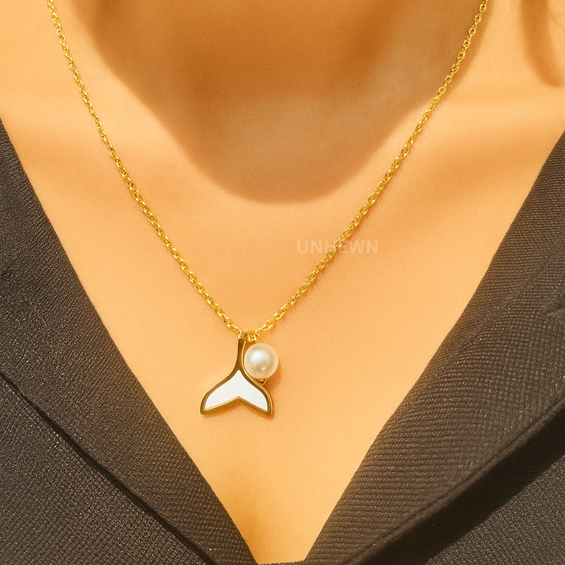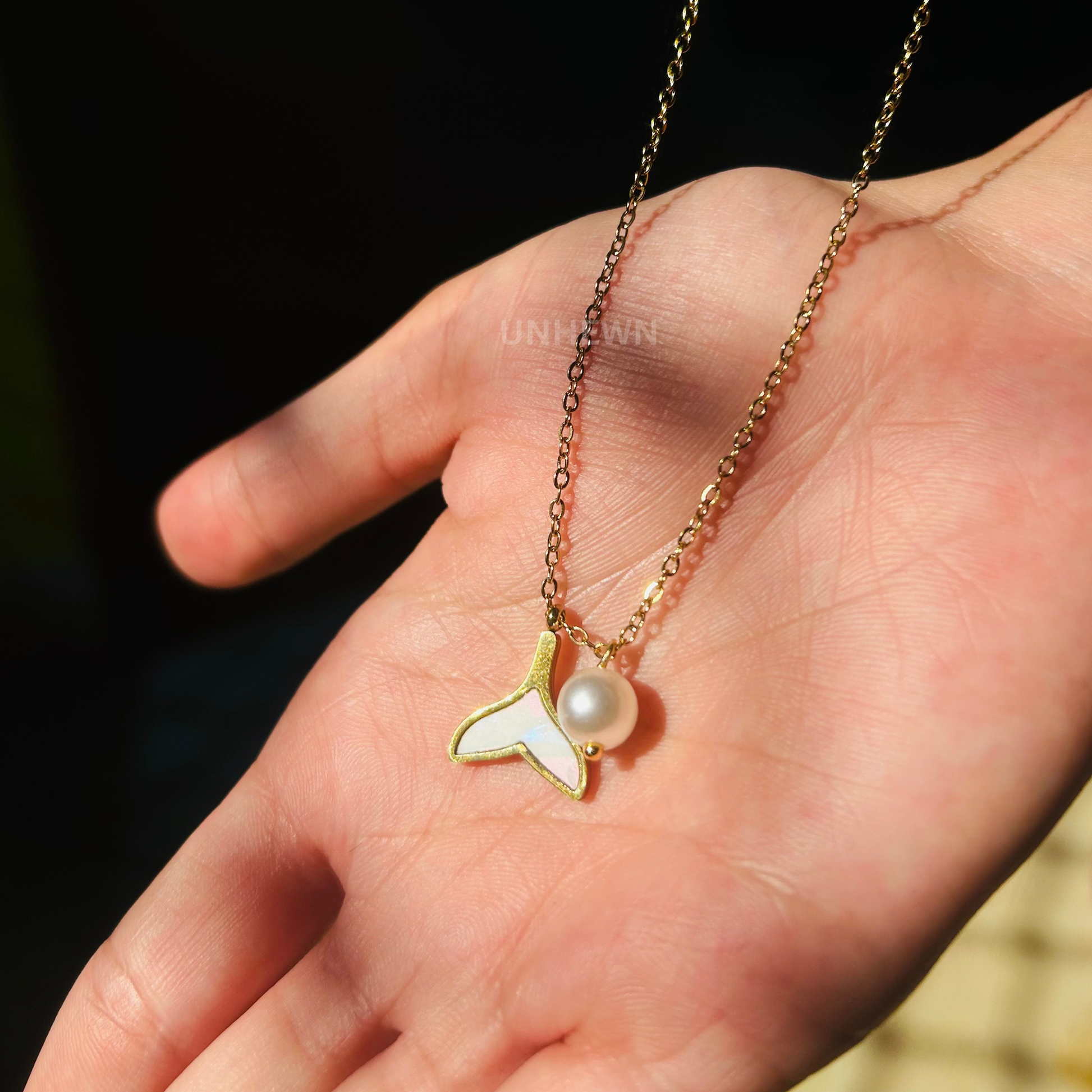 Inspired by the graceful curve of a whale’s tail, the Ocean Pearl Pendant celebrates the beauty and freedom of the sea. A lustrous pearl nestles beside a mother-of-pearl inlay, all set in radiant gold - perfect for adding a touch of coastal elegance to your everyday look.