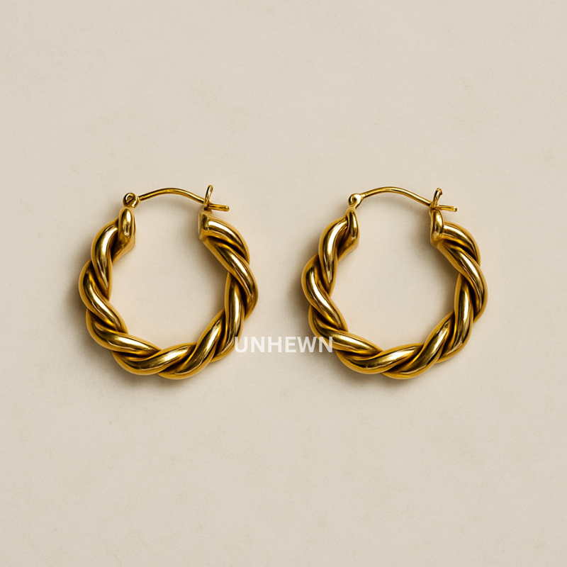 A classic redefined - these Twist Hoops bring a touch of sculptural elegance to everyday styling. The double-strand rope design creates a dynamic texture and form, balancing boldness with wearability. Perfect for layering or making a statement on their own, these hoops are a staple in any modern jewelry wardrobe.